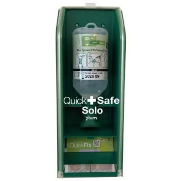 Plum QuickSafe Solo – eine kompakte, benutzerfreundliche Erste-Hilfe-Station mit Augenspülung und Pflasternachfüllung für schnelle, einfache Hilfe. Hervorragende Sichtbarkeit, staubdichte Hygiene und anpassbarer Inhalt machen ihn zu einem Muss für jeden Arbeitsplatz.